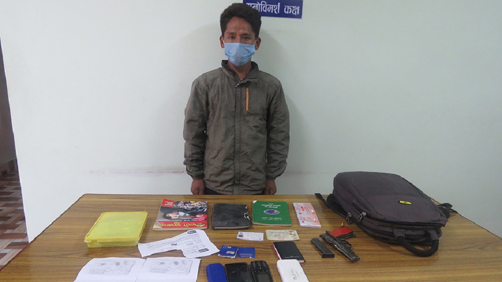 प्रहरीका अनुसार शेर्पा ‘विप्लव’ समूहको ४ नम्बर कम्पनीका सेक्सन कमान्डर हुन्। शेर्पाको साथबाट एउटा पेस्तोल, म्यागजिन, तीन राउण्ड गोली, पार्टीको पर्चा, पम्प्लेटजस्ता सामाग्रीहरु बरामद गरेको प्रहरीले जानकारी दिएको छ।