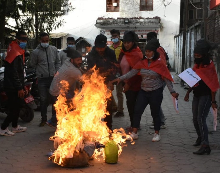 पेट्रोलियम पदार्थको मूल्यवृद्धिको विरोधमा अनेरास्ववियुले प्रधानमन्त्री शेरबहादुर देउवाको पुत्ला जलाएको छ ।