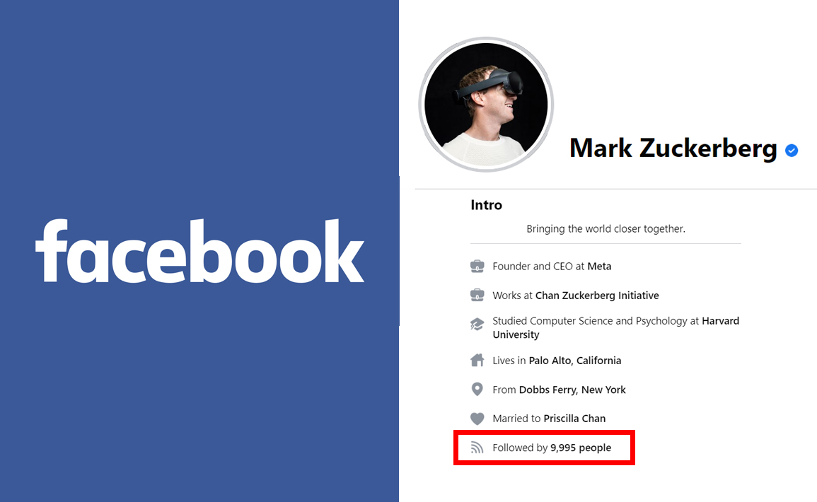 फेसबुकका संस्थापक तथा सीईओ मार्क जुकरबर्गको फलोअर्स ११ करोड ९० लाख रहेकोमा घटेर नाै हजार हाराहरीमा देखिएको थियो । तर अहिले उनका फलोअर्स ११ करोड ९१ लाख जना पुगेका छन् ।