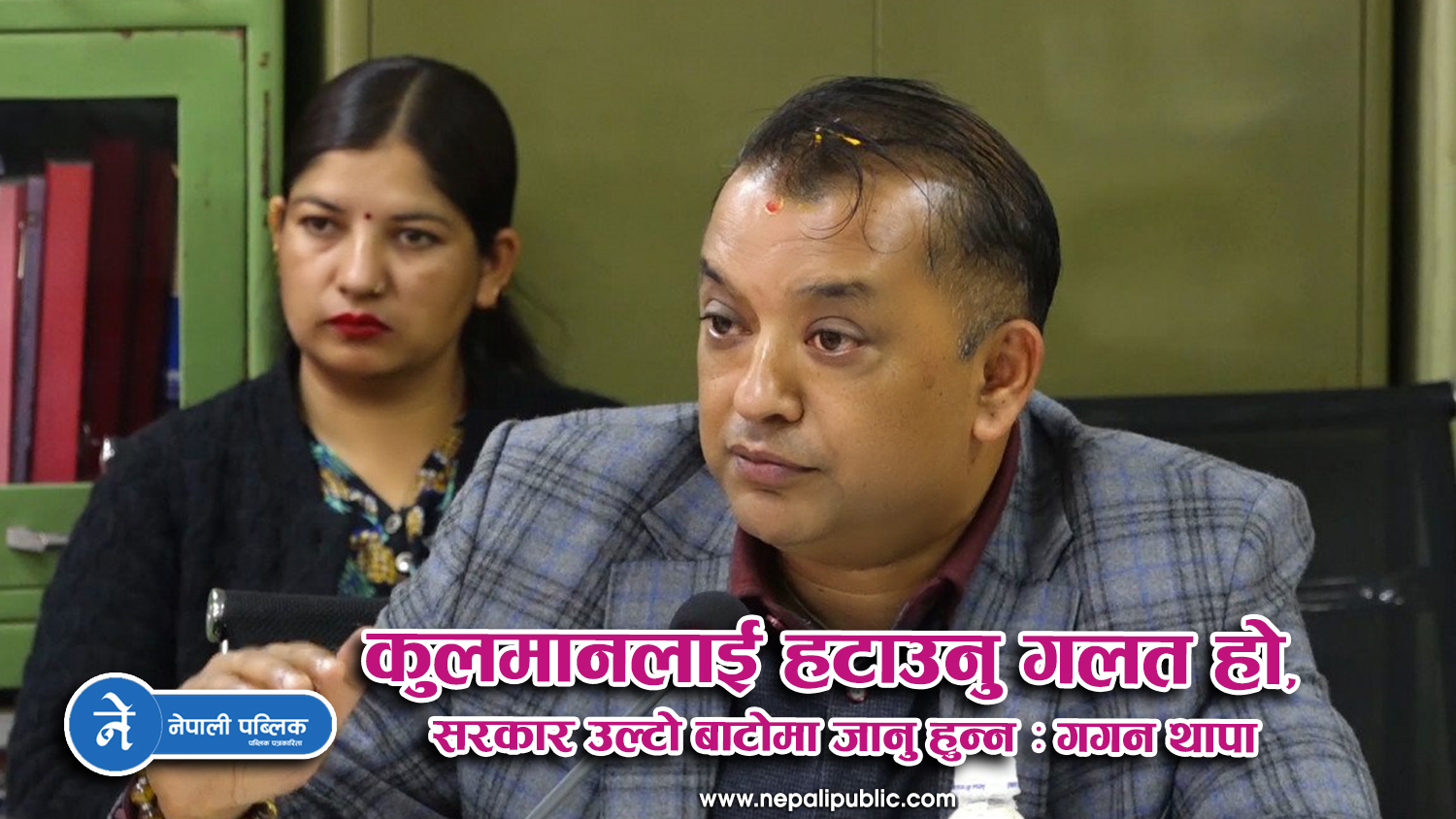 नेपाली कांग्रेसका महामन्त्री गगन थापाले नेपाल विद्युत् प्राधिकरणका कार्यकारी निर्देशक कुलमान घिसिङलाई पदबाट हटाउने निर्णयलाई गल्त भएकाे भन्दै कडा आलोचना गरेका छन् । सरकारले यस्तो निर्णय गरेर जनता बीच असन्तुष्टिको आगोमा तेल हाल्ने काम गरेको बताएका छन् ।