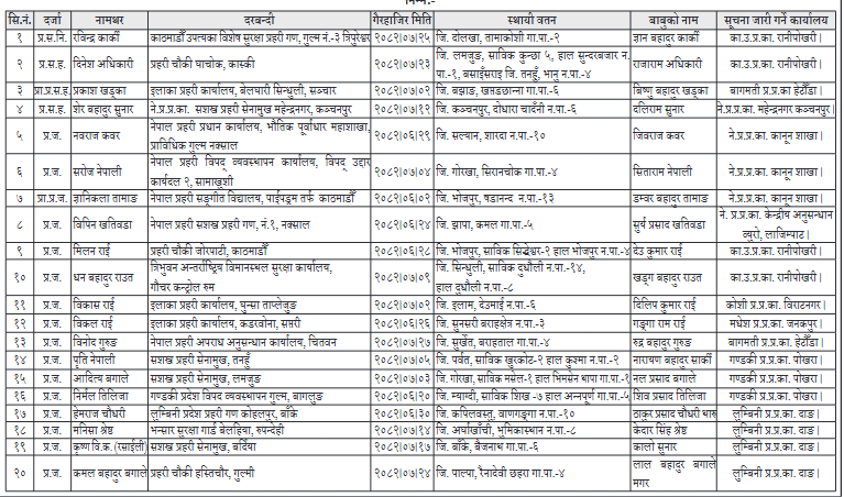 प्रहरी महानिरीक्षकको सचिवालयअन्तर्गत कानून शाखाले प्रकाशित गरेको सूचनामा ती कर्मचारीहरू आफूखुसी कार्यालयमा गैरहाजिर रहेको उल्लेख छ।