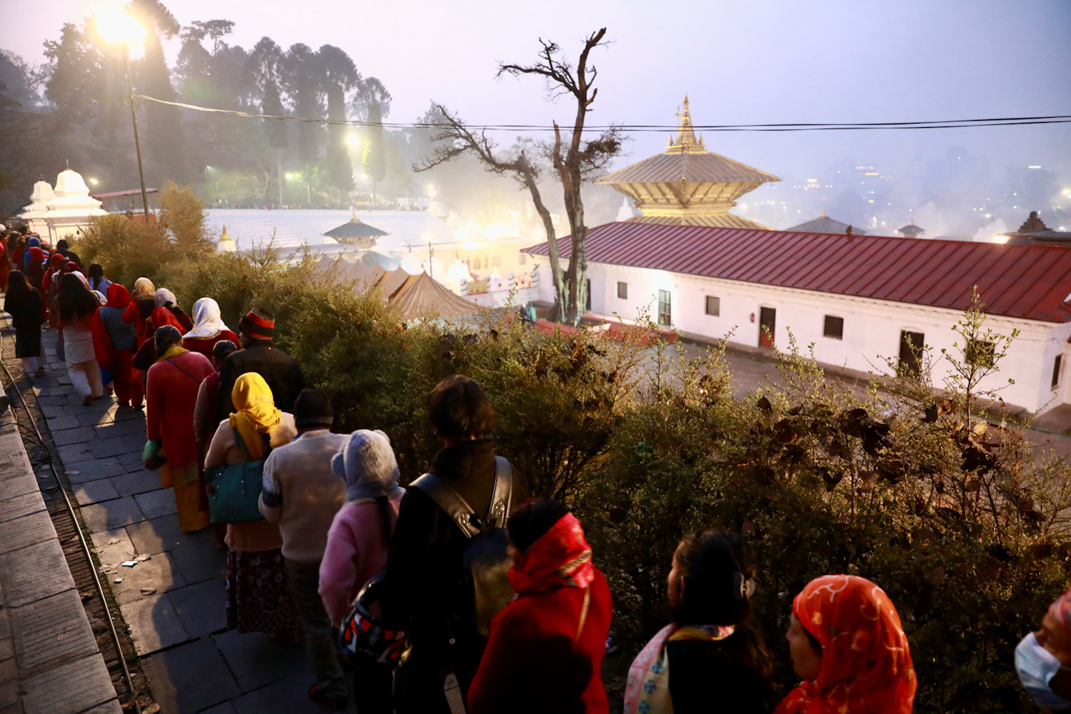 मन्दिर परिसरमा बाबाहरूले धुनी बालेर बसेका छ्न् भने पशुपतिनाथको दर्शनका लागि भक्तजनहरू बिहानैदेखि लाइन लगेका छ्न् ।