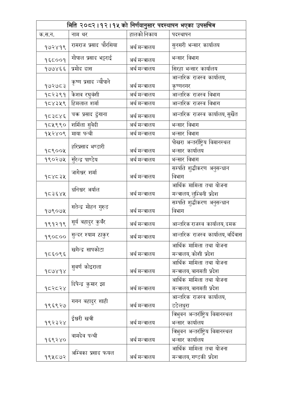 यसबाहेक कतिपय उपसचिवहरूको प्रदेश आर्थिक मामिला तथा योजना मन्त्रालयमा सरुवा भएको छ ।