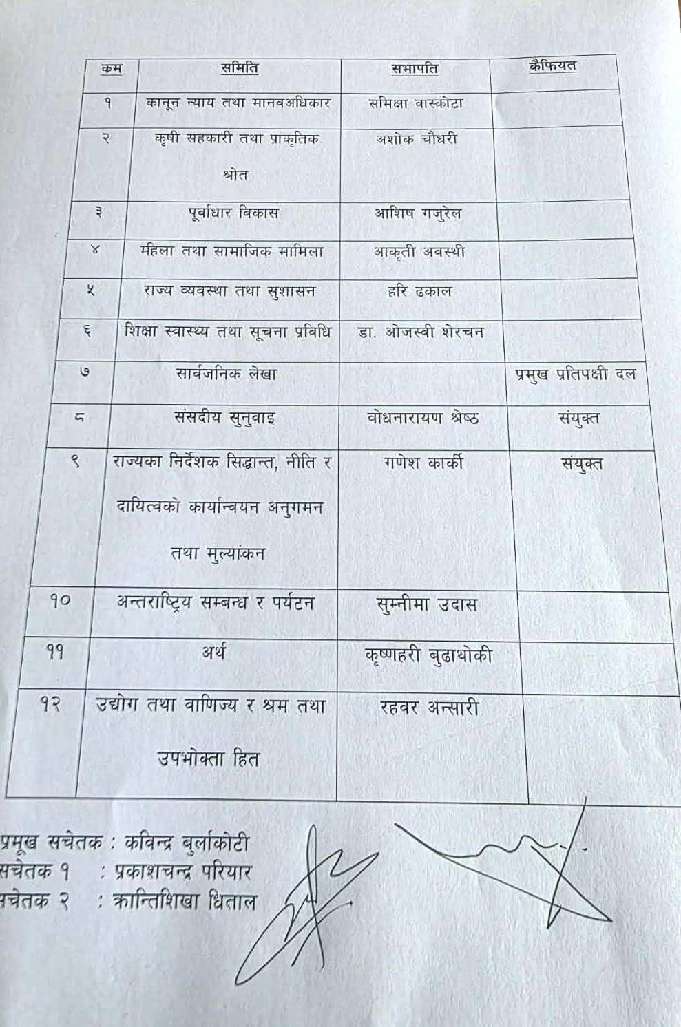 बिहीबार बसेको रास्वपा संसदीय दलको बैठकले २ संयुक्तसहित १० एकल समितिका सभापतिको उम्मेदवार टुङ्ग्याएको हो ।