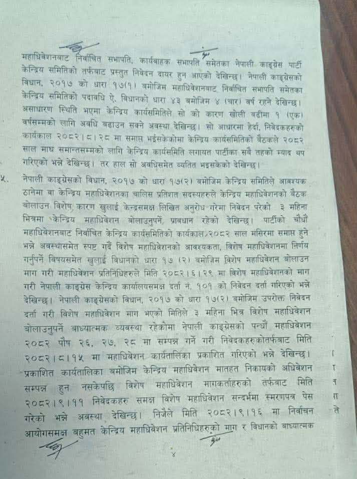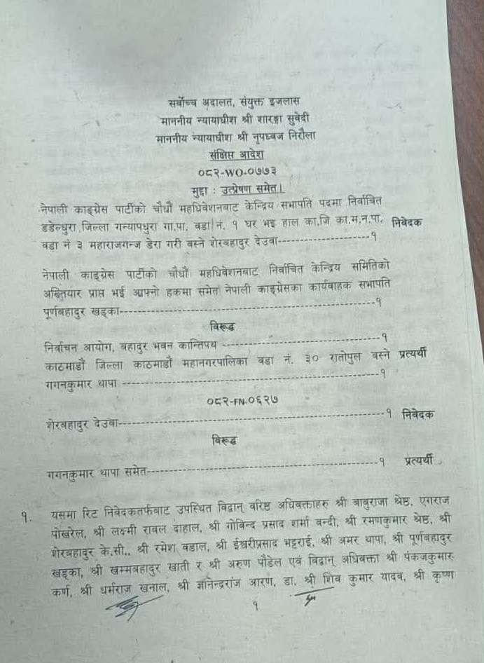 सर्वोच्चको निर्णयसँग विशेष महाधिवेशनलाई मान्यता दिन नहुने शेरबहादुर देउवा समूहको माग अप्रत्यक्ष रुपमा अस्विकृत भएको हो ।