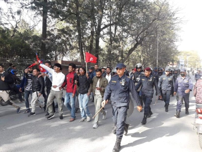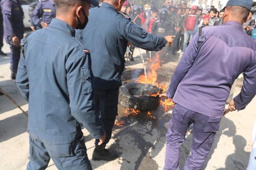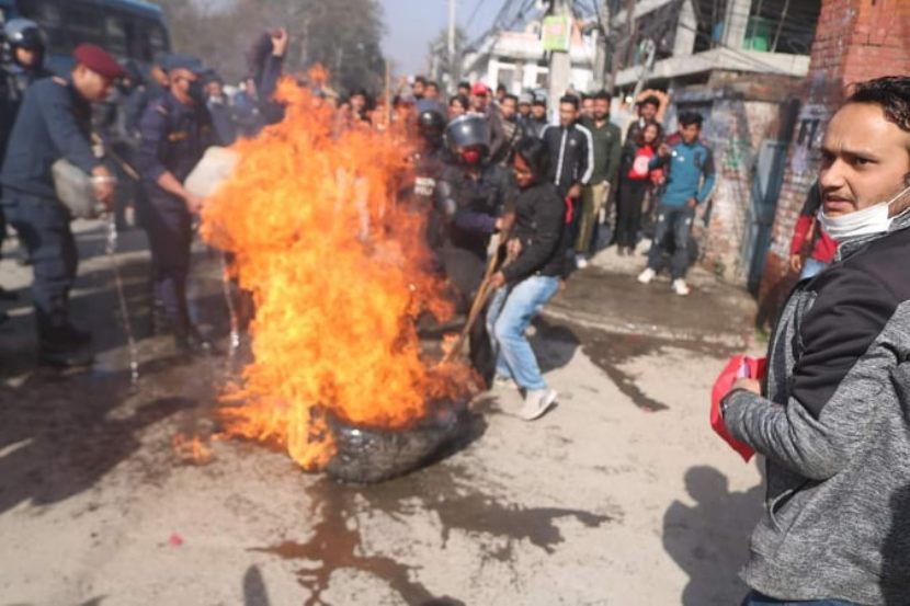 साथै विद्यार्थीहरुले टायर बालेर सडक अवरुद्ध गरेका छन्। नेवि संघका नेता पुस्कर बास्तोलाले केपी ओली सरकारले निरन्तर राष्ट्रघाती काम गरिरहेको बताउँदै यो सम्झौता तत्काल खारेज गर्न मागसहित प्रदर्शन गरिएको बताएका छन्।