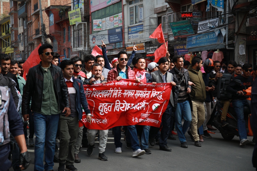 शकरदेव क्याम्पस इकाई कमिटिले सरकार र राउतबीच भएको सहमति विरुद्व नाराबाजी गर्दै बागबजार, पुतलीसडक, रत्नपार्क, लगायतका स्थानमा प्रदर्शन गरेका हुन्।