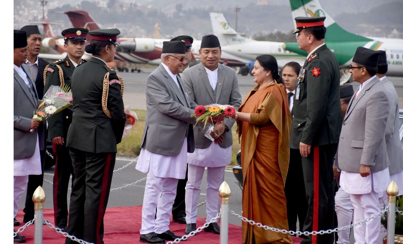 काठमाडौं – राष्ट्रपति विद्यादेवी भण्डारी महिलाको स्थितिसम्बन्धी संयुक्त राष्ट्रसङ्घीय आयोगको ६३औँ अधिवेशनमा भाग लिएर शुक्रबार स्वदेश फर्किएका छ। स्वदेश फर्किने क्रममा भण्डारीलाई त्रिभुवन अन्तरराष्ट्रिय विमानस्थलको अतिविशिष्ट कक्षमा उपराष्ट्रपति, प्रधानमन्त्री, उपप्रधानमन्त्री तथा रक्षामन्त्री र परराष्ट्रमन्त्रीले स्वागत गरेका छन्। उक्त अवसरमा मन्त्रिपरिषद्का सदस्य, सांसद, संवैधानिक अङ्गका प्रमुख, विशिष्ट श्रेणीका सरकारी कर्मचारी, सुरक्षा निकायका प्रमुखलगायतको पनि उपस्थिति थियो।