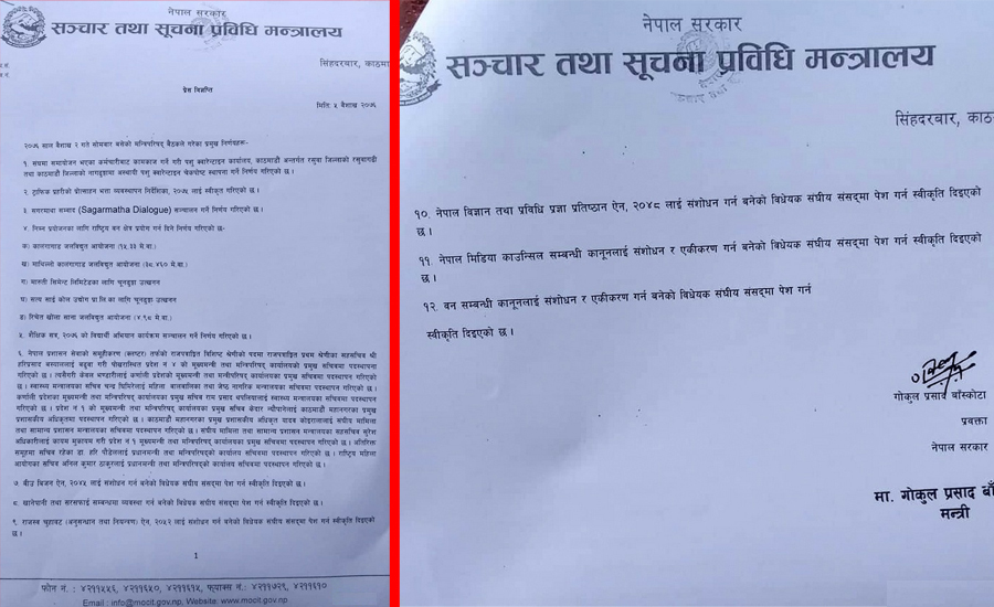 प्रदेश १ को मुख्यमन्त्री तथा मन्त्रिपरिषद कार्यालका प्रमुख सचिव केदार न्यौपानेलाई काठमाडौँ महानगरपालिकाको प्रमुख प्रशासकीय अधिकृत र महानगरका यादव कोइरालालाई संघीय मामिला तथा सामान्य प्रशासन मनत्रालयको सचिवको जिम्मेवारी दिएको छ।