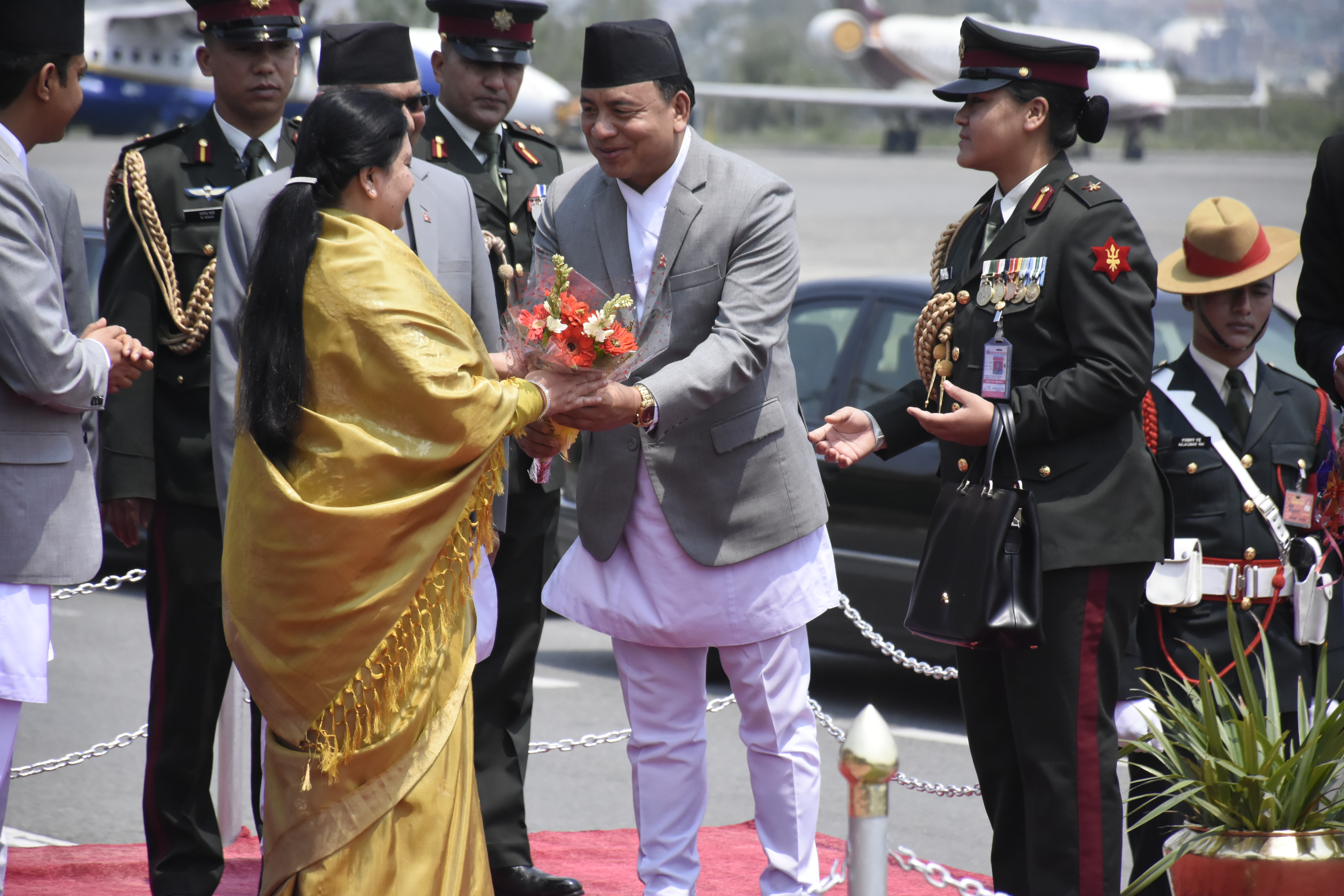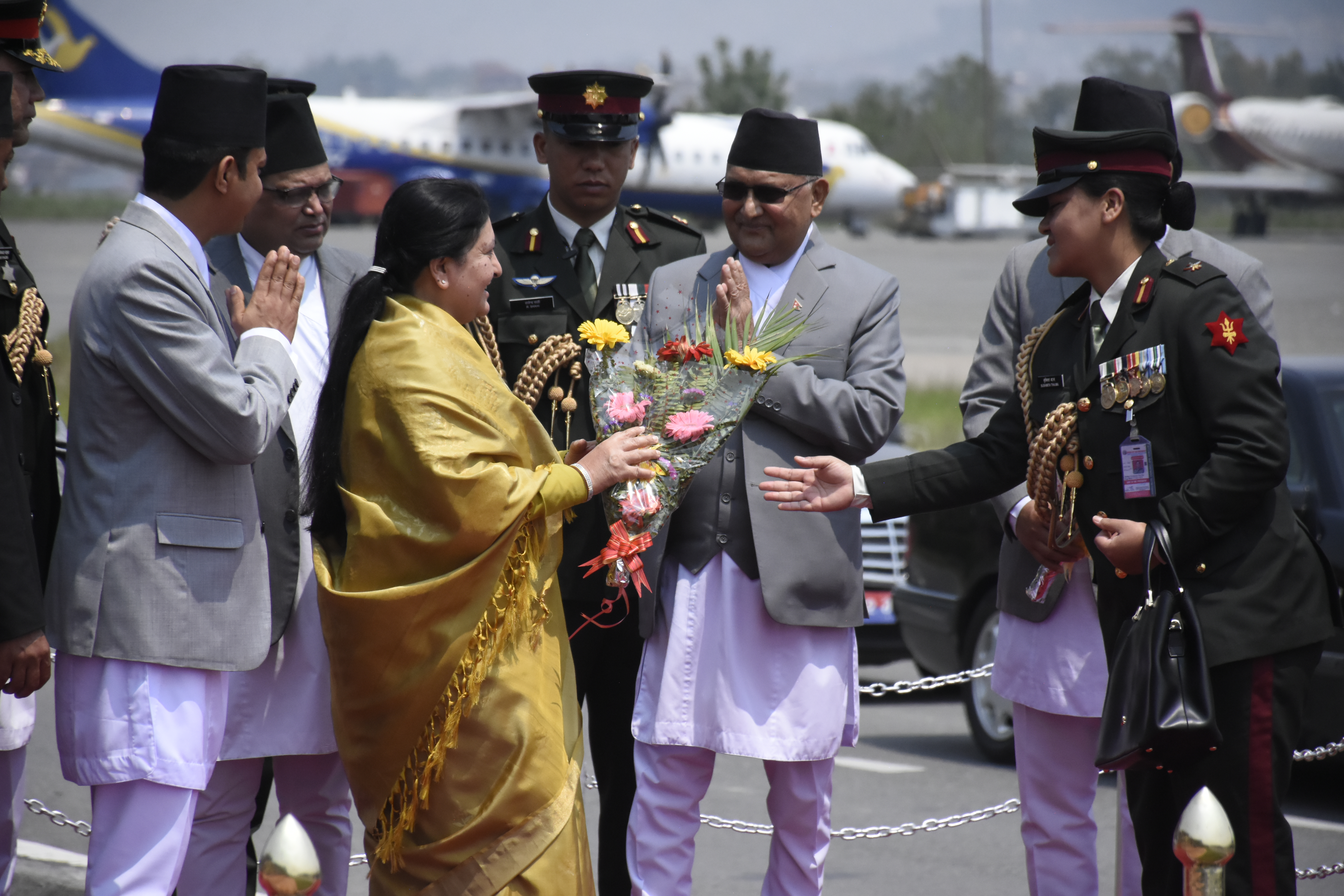 यसैगरी, सांसदहरु ज्ञानेन्द्रबहादुर कार्की, योगेश भट्टराई, रामेश्वरराय यादव, कमलकुमारी ओली, प्रेमप्रसाद तुलाचन, विमला विश्वकर्मा र गजेन्द्रबहादुर महत भ्रमण टोलीमा छन्। परराष्ट्र सचिव शंकरदास बैरागी दाहाल, उद्योग वाणिज्य तथा आपूर्ती सचिव केदारबहादुर अधिकारी, राष्ट्रपति कार्यालय सचिव विनोद केसी, निजी चिकित्सक डा. धर्मकान्त बास्कोटा, शिष्टाचार महापाल गेहेन्द्र राजभण्डारी पनि राष्ट्रपतिको भ्रमणमा सामेल रहेका छन्।