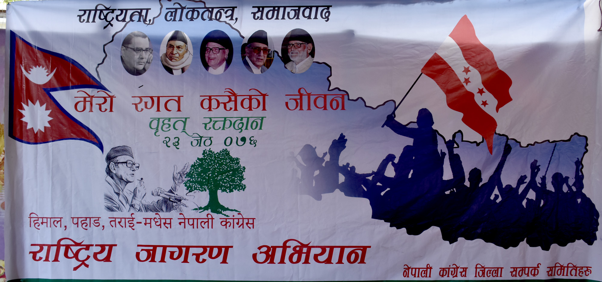 नेपाली कांग्रेसले बिहीबारदेखि राजधानीको भृकुटीमण्डपमा ‘मेरो रगत कसैको जीवन’ भन्ने नाराका साथ रक्तदान कार्यक्रमको शुरुआत गरेको छ। रक्तदान कार्यक्रम हरेक महिना गर्ने र काठमाडौँको विभिन्न अस्पताल हुने रगत अभावलाई सहयोग पुग्ने जनाइएको छ।