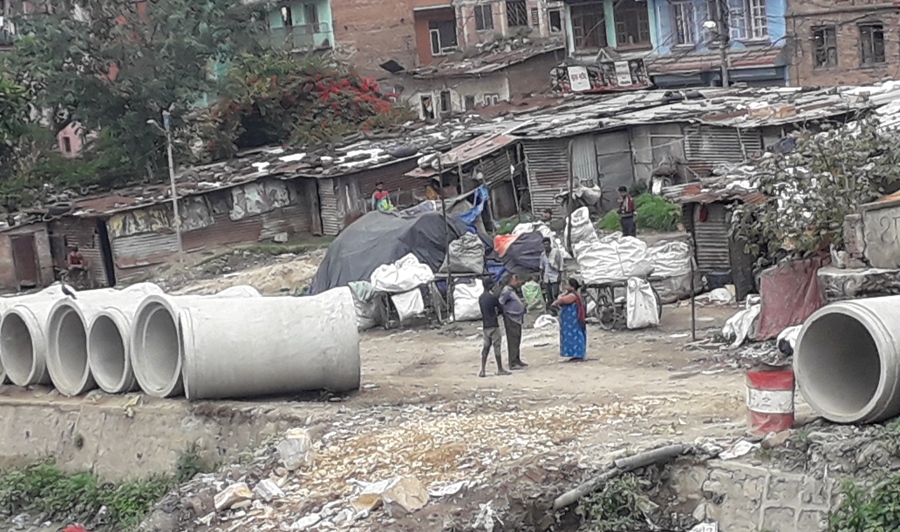 विष्णुमती पुलनजिक खोलाछेउको टहरामा २ छोरा र १ छोरीसहित रिनादेवीको बसोबास छ। उनका श्रीमान दिपक फोहोरमा फालिएका कवाडी सामानहरु बटुलेर बेच्छन्। त्यहीबाट आएको ४ देखि ५ सय रुपैयाँ कमाइले उनीहरुको परिवारको खर्च धानिरहेको छ। ‘पानी परेको बेला काम हुँदैन। काम नभएपछि कमाइ पनि हुने कुरा भएन,’ रिनादेवी परिवारको कहर सुनाउँछिन्। त्यस्तो बेला भोकभोकै बस्नुबाहेक उनीहरुसँग विकल्प छैन।